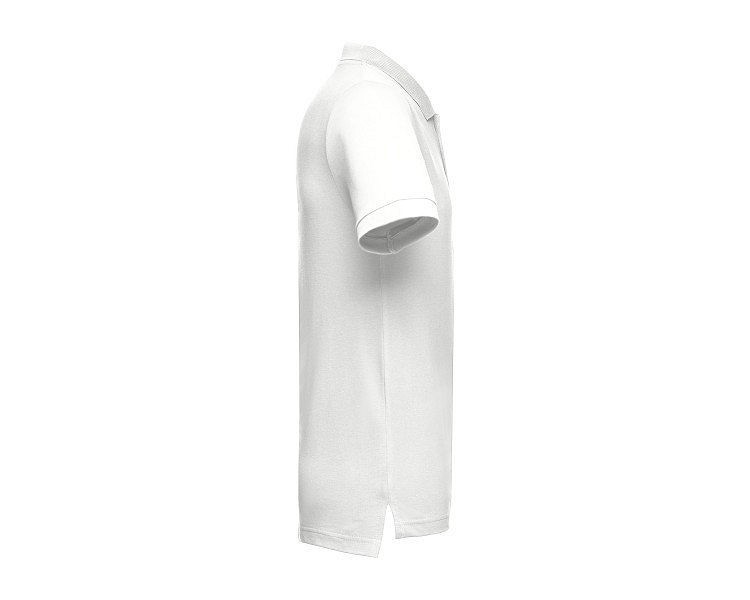Muška polo majica kratkih rukava od 100% piquč mesh pamuka (195 g/m²). Majica ima regular fit kroj, a ranfle na rukavima i kragna su od rebrastog materijala. Okovratnik je ojačan piquč trakom. Na prednjoj strani, pored kragne, nalaze se tri dugmeta u boji majice (dodatno dugme umetnuto u unutrašnji šav). Majica je sečena i šivena i ima bočne otvore na dnu