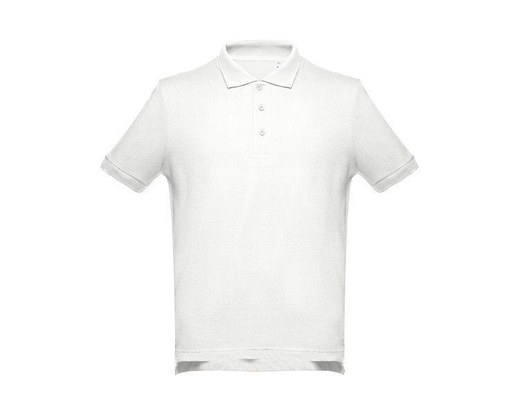 THC ADAM, muška polo majica bela, 195gr/m2, 100% pamuk, okovratnik je ojačan sa unutrašnje strane duplim šavom. Tri dugmeta u boji majice. Dobija se dodatno zamensko dugme ušiveno sa unutrašnje strane majice. Etiketa na unutrašnjoj strani kragne koja se lako skida. Ne-standardni kroj majice, prednja strana majice je kraća od zadnjeg dela za oko 1cm.